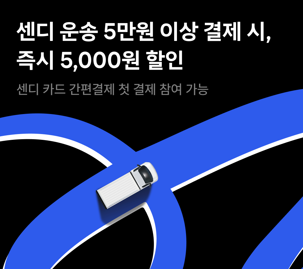 오직 센디 고객님만 받을 수 있는 5,000원 할인으로 알뜰하게 결제하고, 쉽고 빠르게 운송 서비스를 경험해보세요.