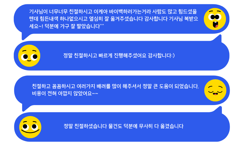 실제로 이케아에서 센디 운송 서비스를 이용한 고객님들의 후기도 공유드리며, 더욱 더 용달 서비스를 간편하게 이용할 수 있는 정보로 돌아오겠습니다.