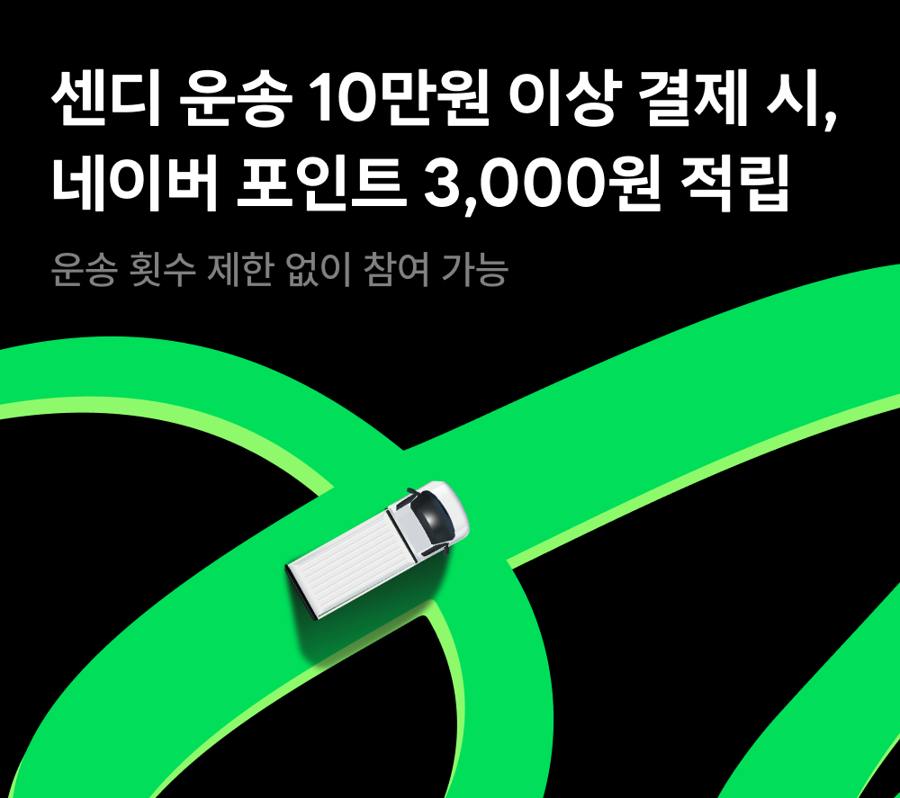 센디와 네이버페이가 준비한 3,000원 포인트 제공으로 알뜰하게 결제하고, 쉽고 빠르게 운송 서비스를 경험해보세요.
