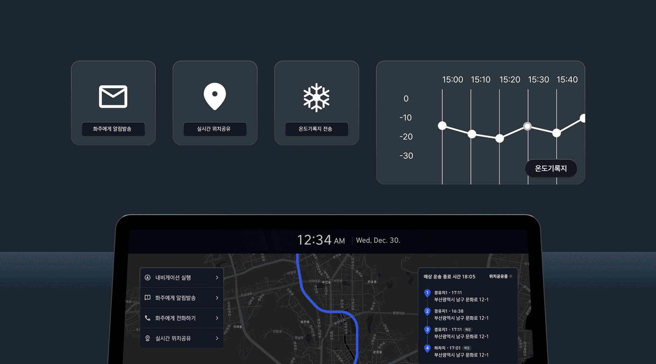 ‘ST1’에 센디 드라이버 앱을 탑재해 실시간 경로 최적화, 차량 상태 모니터링, 운행 리포트 제공까지 가능하게 했어요.